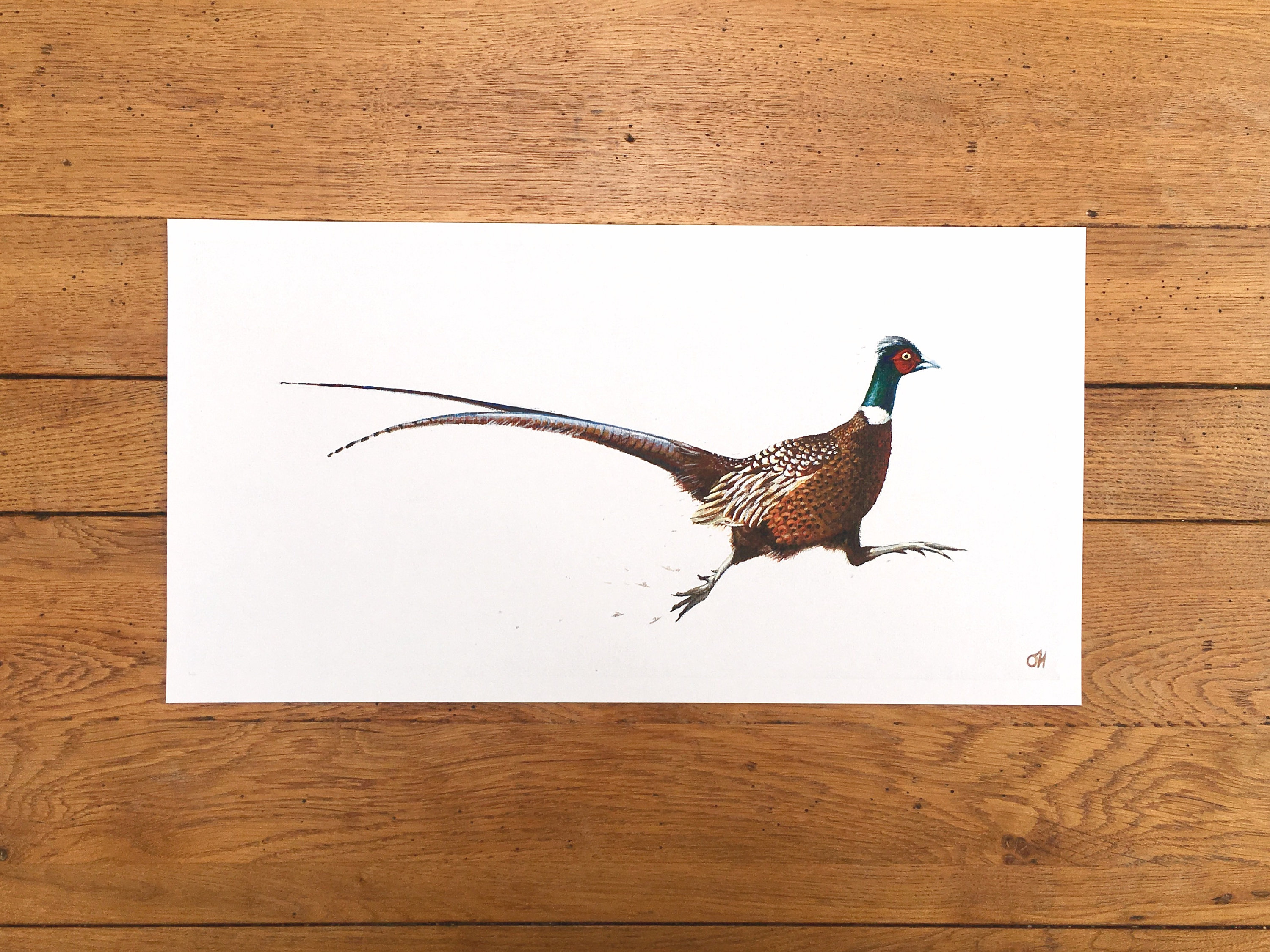 This is a fine art giclée print of my original acrylic on canvas painting ‘Running Pheasant’.
