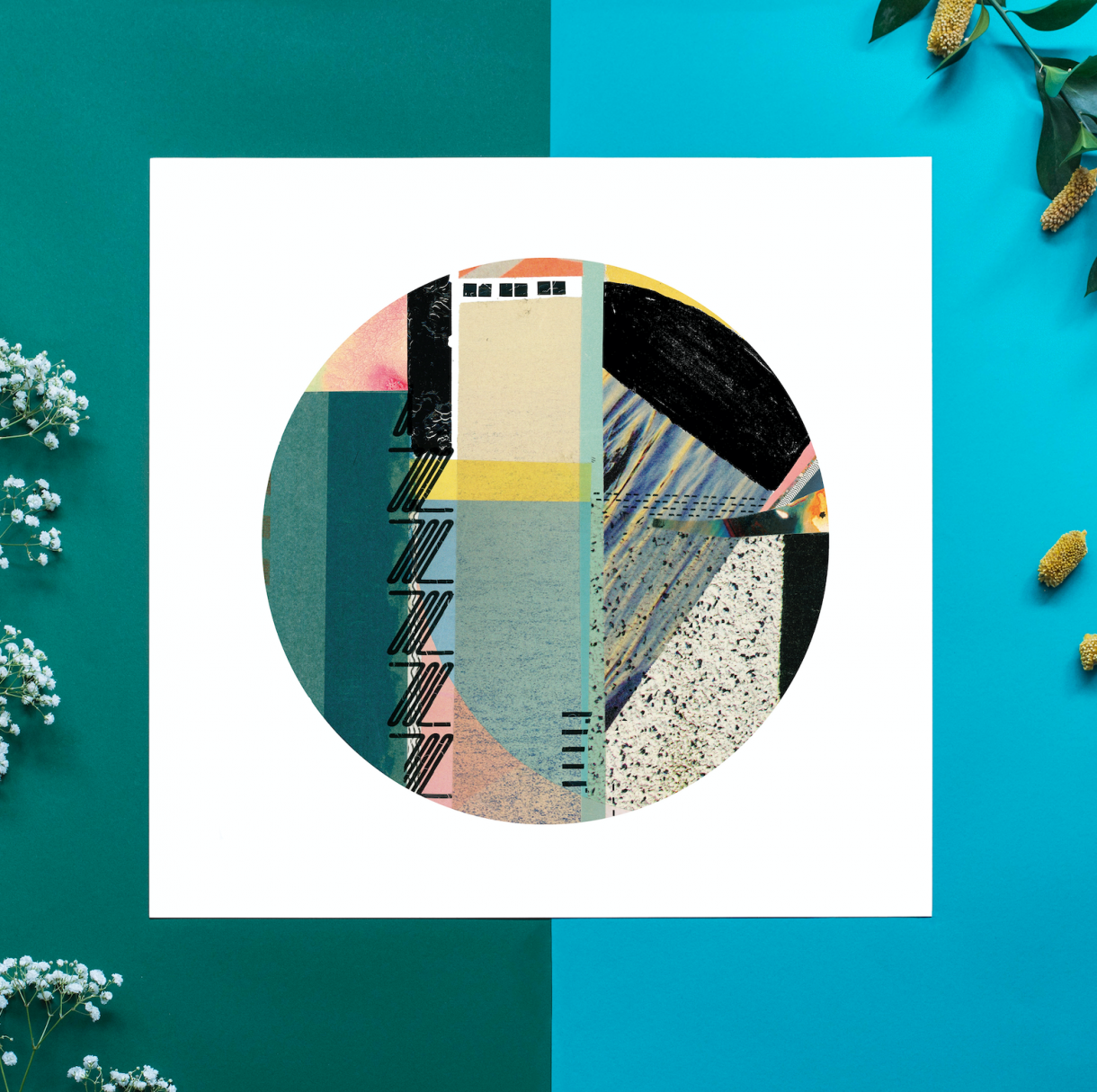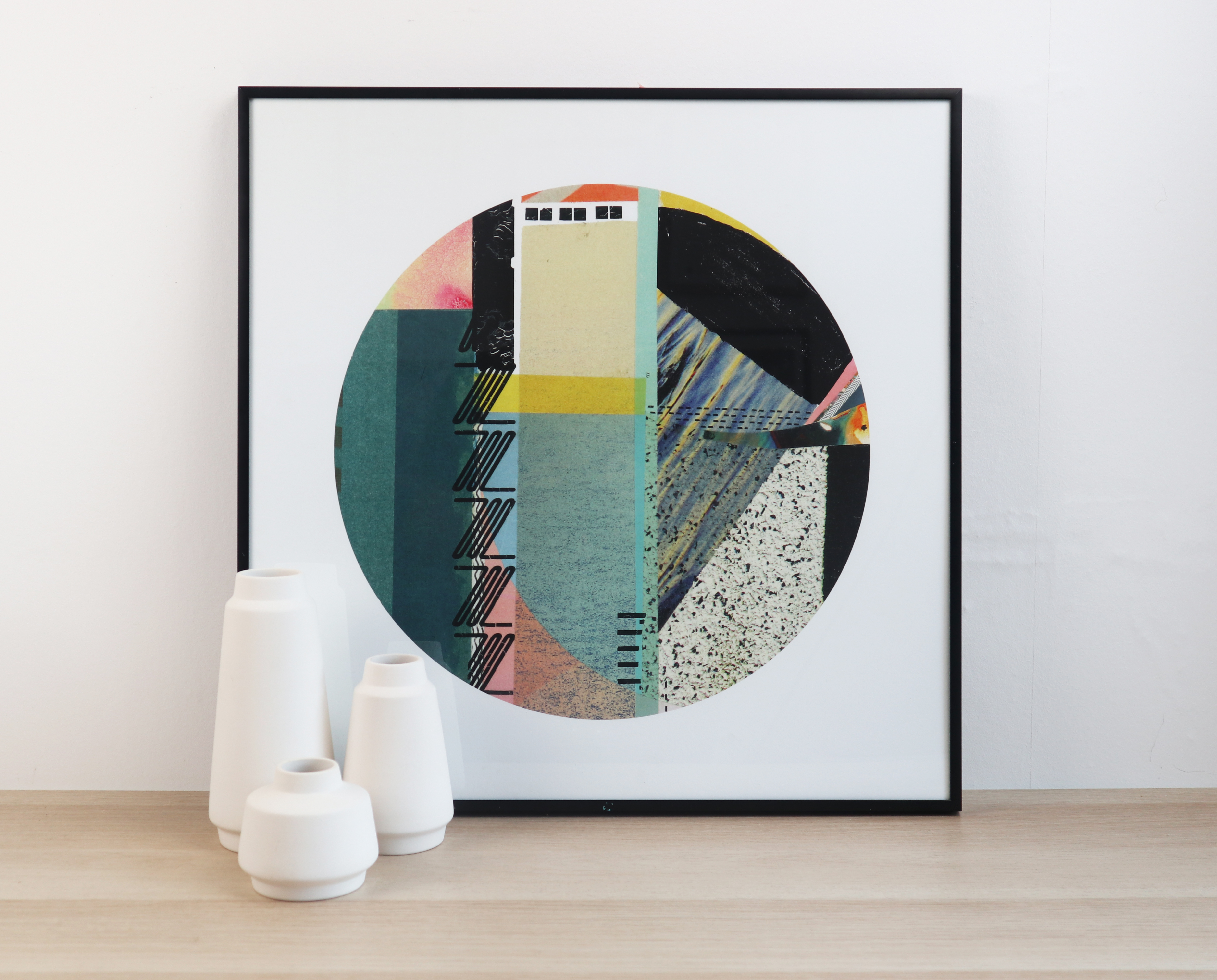 The Circlet collection are handmade abstract collaged pieces created from the curation of found images, papers and letraset pulled together to make surprising colour pallets, jarred textures and expressive typographical elements. They are scanned to enlarge with minimal digital editing so they retain all the flaws and textures of the original artwork.