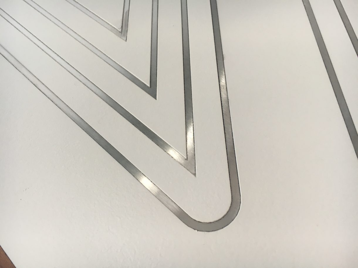 The Hard Line – Contemporary Abstract Art – Laser-cut Minimal Lines in white with stainless steel inserts